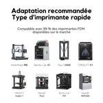 Vous obtenez ainsi des pièces propres, fiables et au fini mat élégant, sans brillance et avec une texture « carbone » très appréciée, tout en limitant les lignes de couche visibles. Conçu pour supporter l’impression haute vitesse (50 à 300 mm/s) avec une bonne dissipation thermique, il est compatible avec de nombreuses machines, dont Bambu Lab, AnkerMake, Voron, Flsun ou Creality.