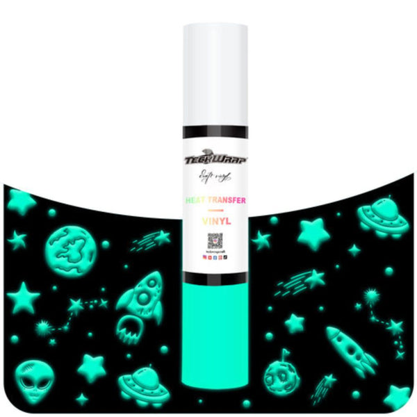 • TeckWrapCraft - Puff HTV Thermocollant Phosphorescent - 7 Feuilles Glow in the Dark - 25 x 30 cm